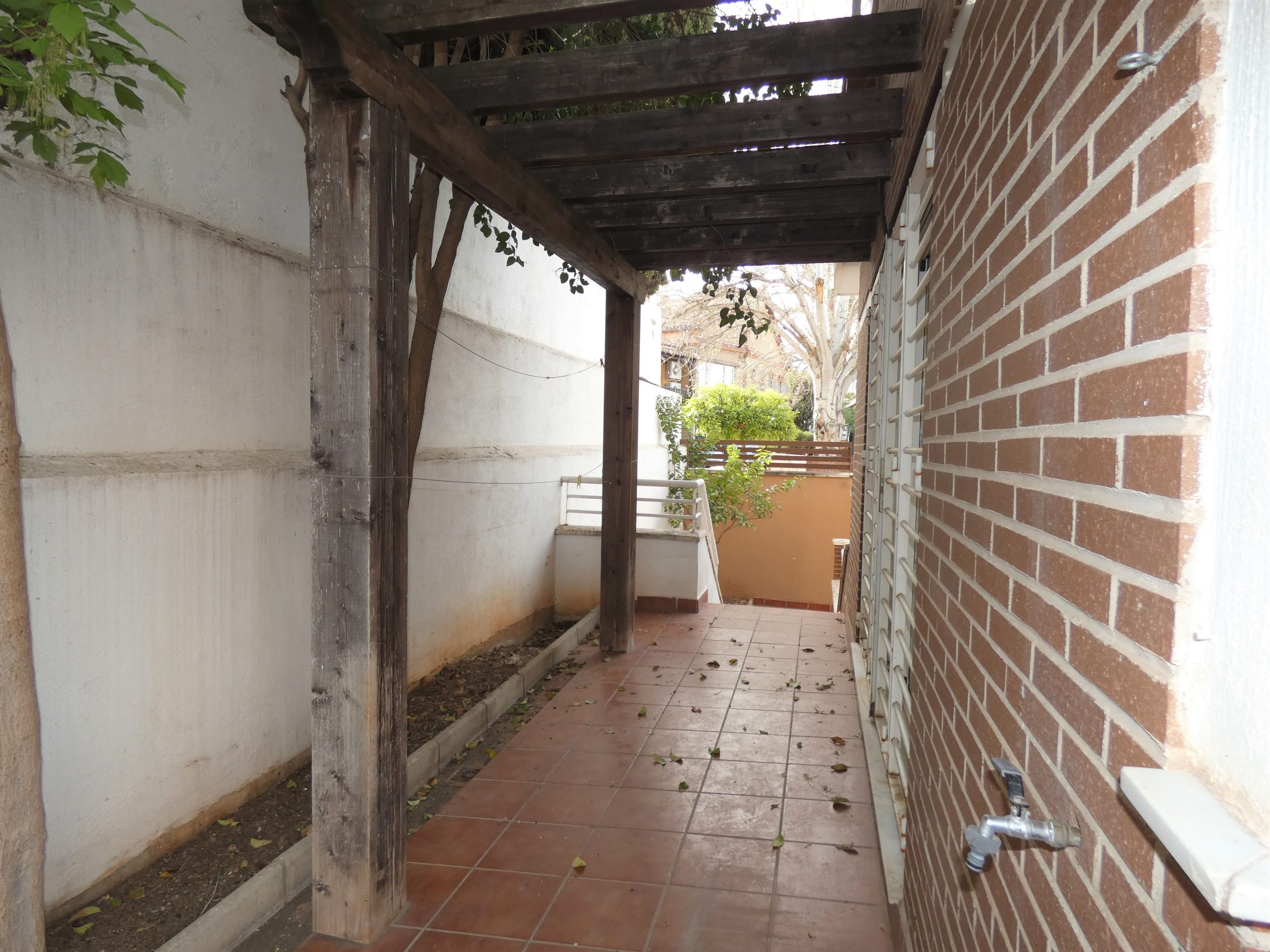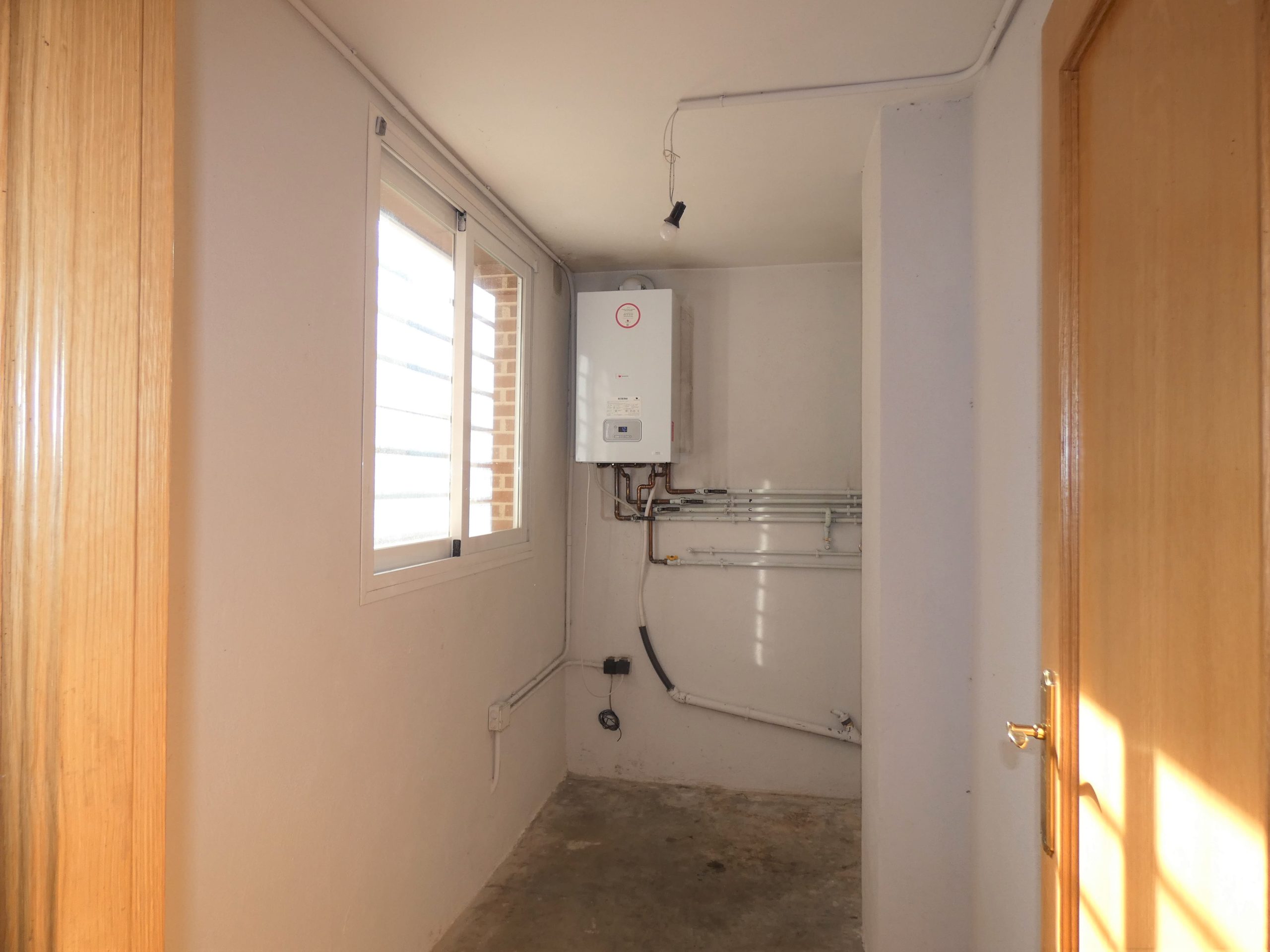 En la planta baja tenemos una cochera con capacidad para tres coches, aseo y cuarto de la caldera de la calefacción central.